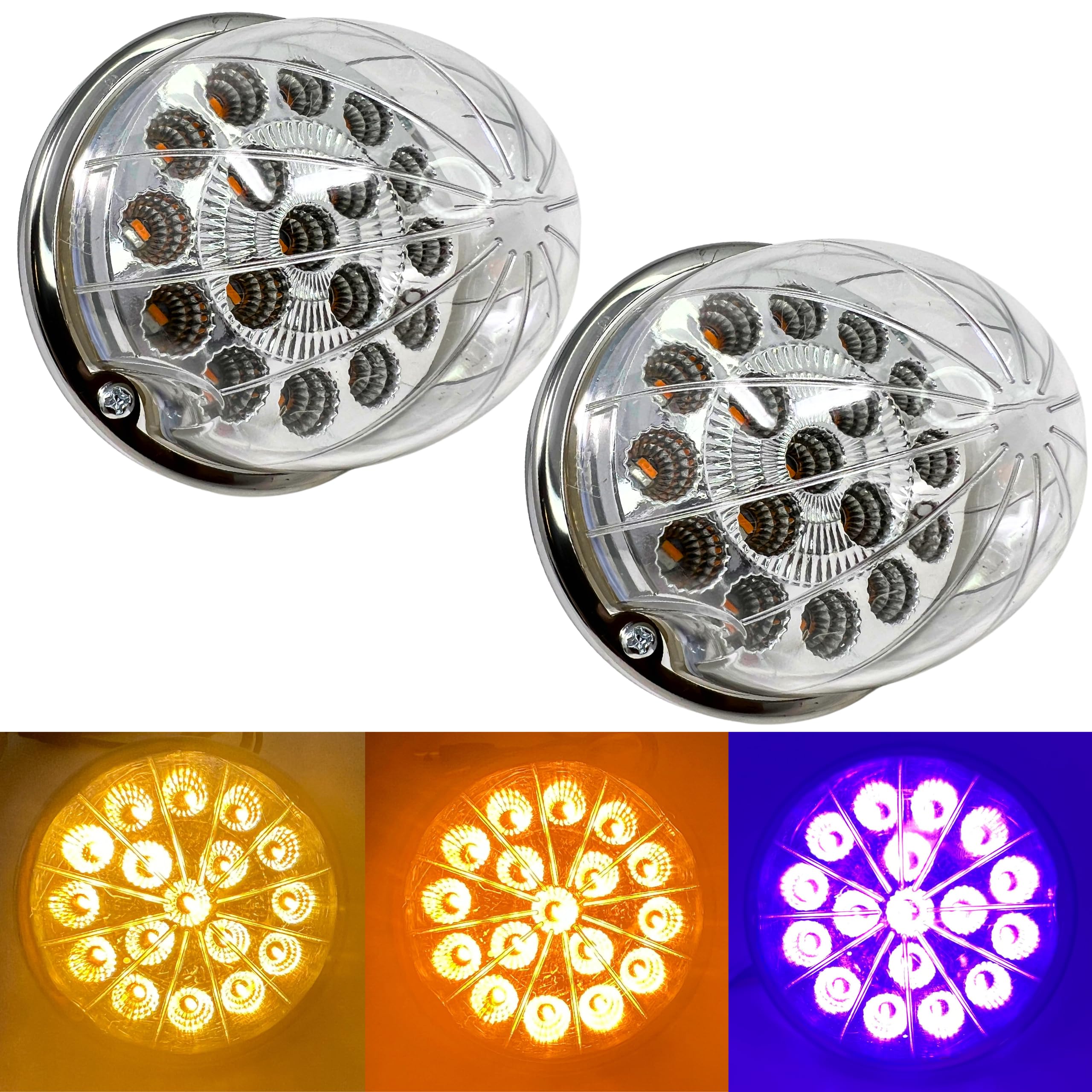 【Super Bright】The dual revolution watermelon light built-in 17 LED with flower faceted reflector design, output super bright light; Outfitting your big trucks with the LED lights will allow other drivers to see you better at night