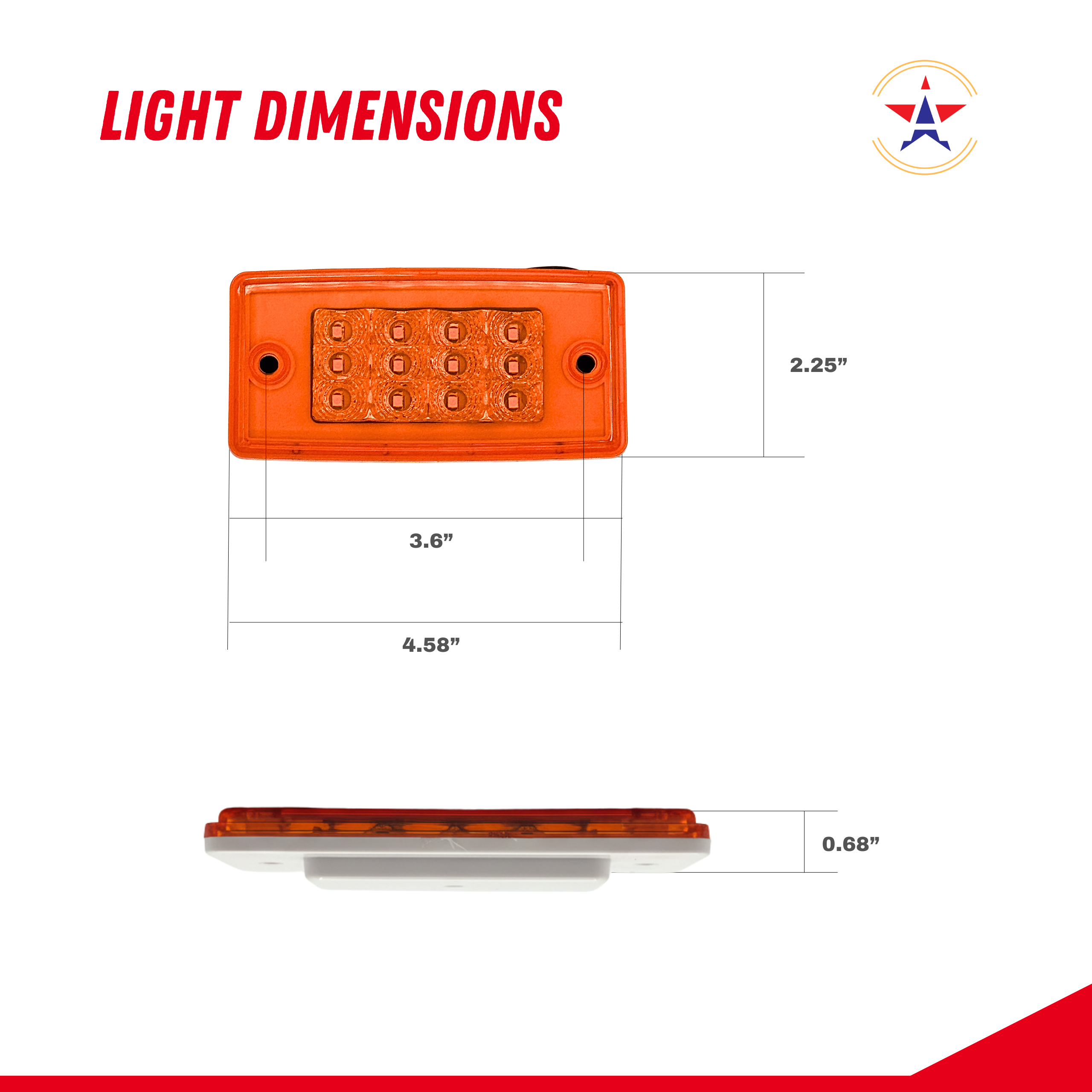 Factory Look: This roof clearance light is Designed for flush mounting and these cab lights look like the factory stock cab light after installation. Dimensions: 115mm x 57mm x 16mm (4.58" x 2.25" x 0.68"); Hole distance: 90mm (3.6")