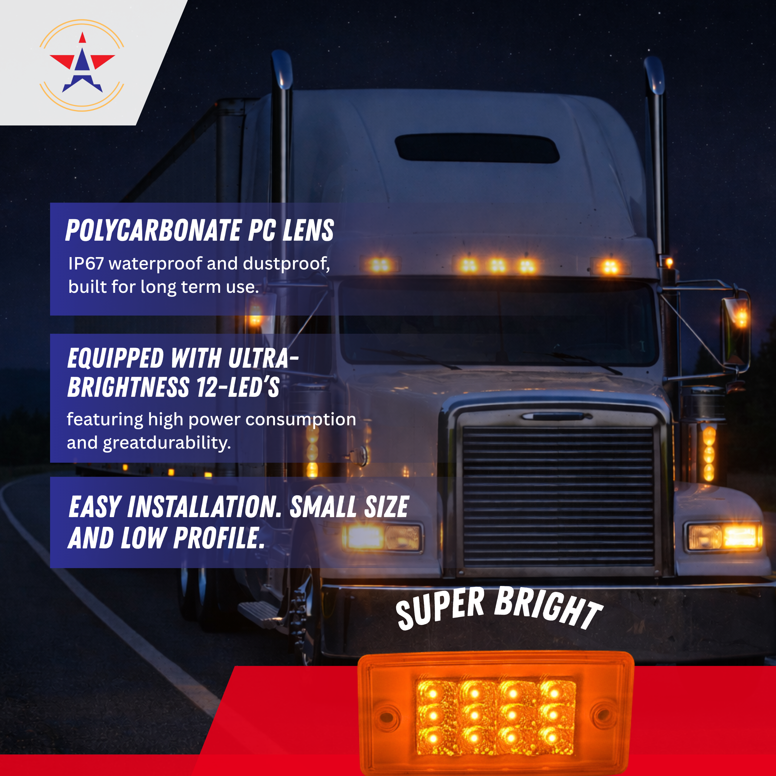 Compatibility: This direct replacement faceted 12 LED cab marker sealed light is designed for Freightliner Century and Columbia models and is DOT compliant for street legal lighting.