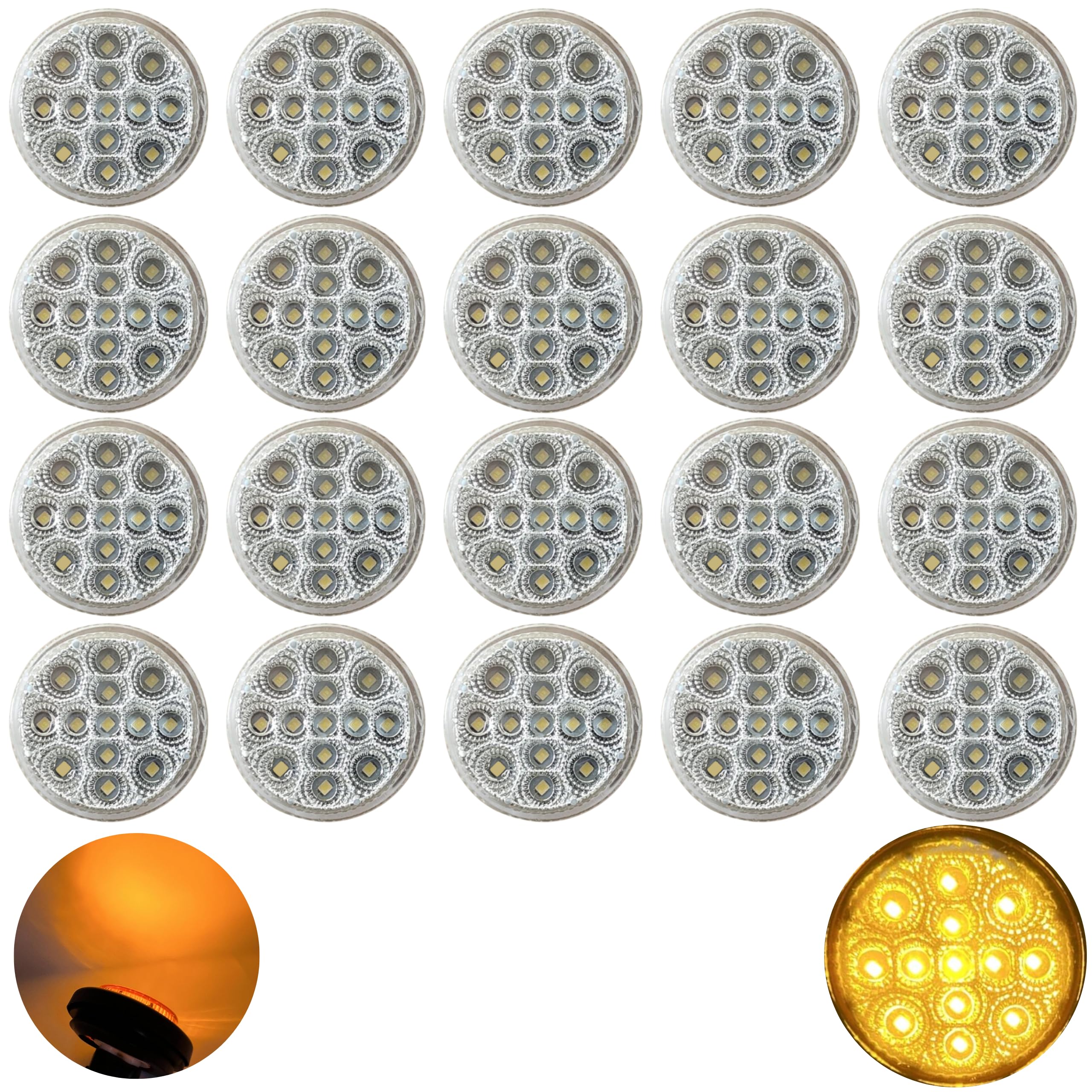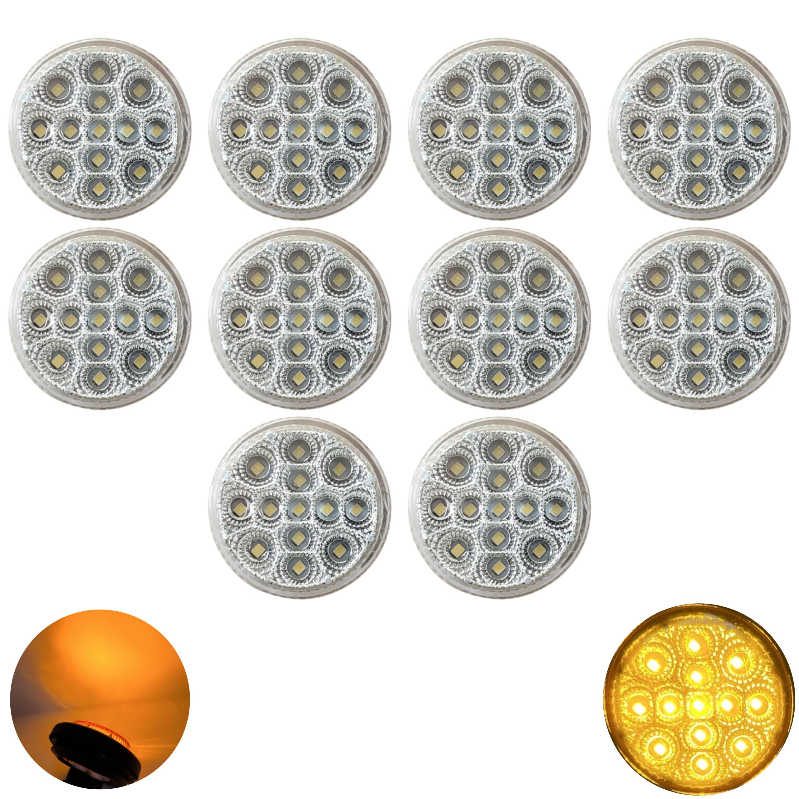 2" Round Amber 13 LED Chromed Reflex Clearance Side Marker Lights Kit