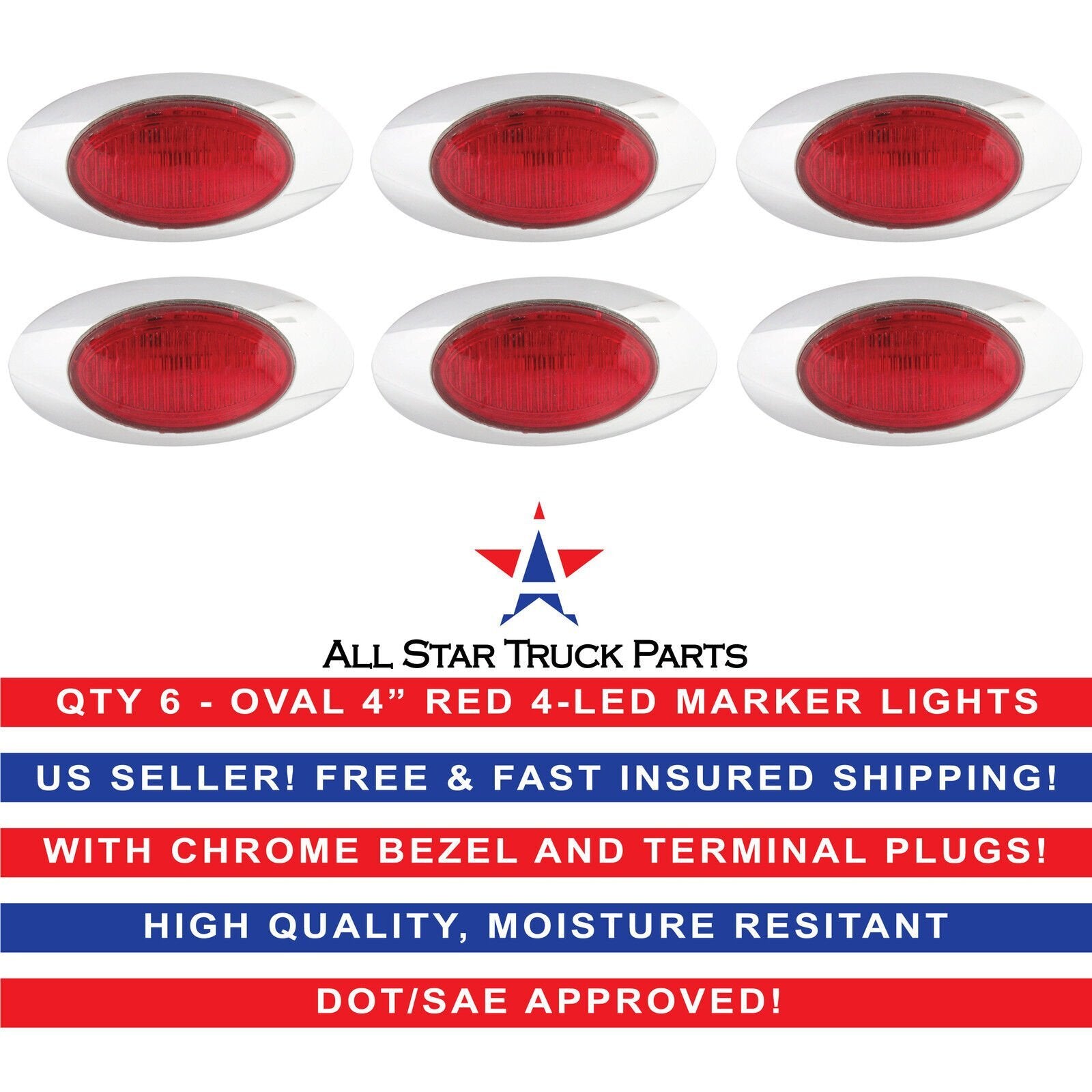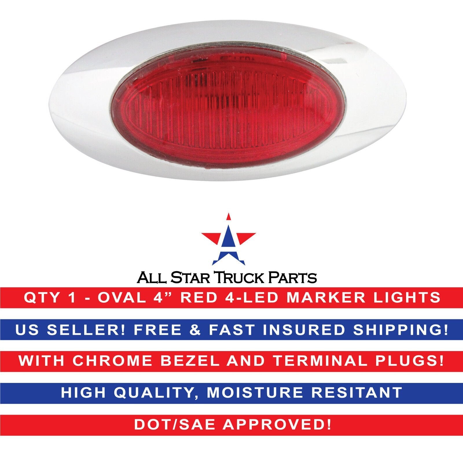 4-1/8" Oval Clearance Marker Light, 4 LED w Chrome Bezel