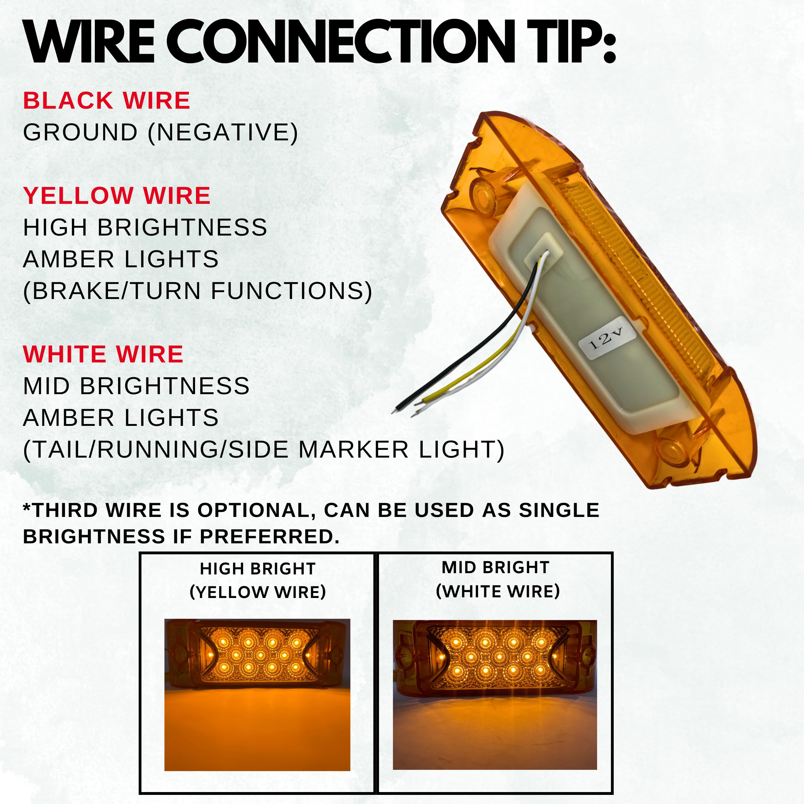 Sealed 6" x 2" Amber Side Marker Light 13 Led Rectangle / Rectangular Light Surface Mount w/reflector