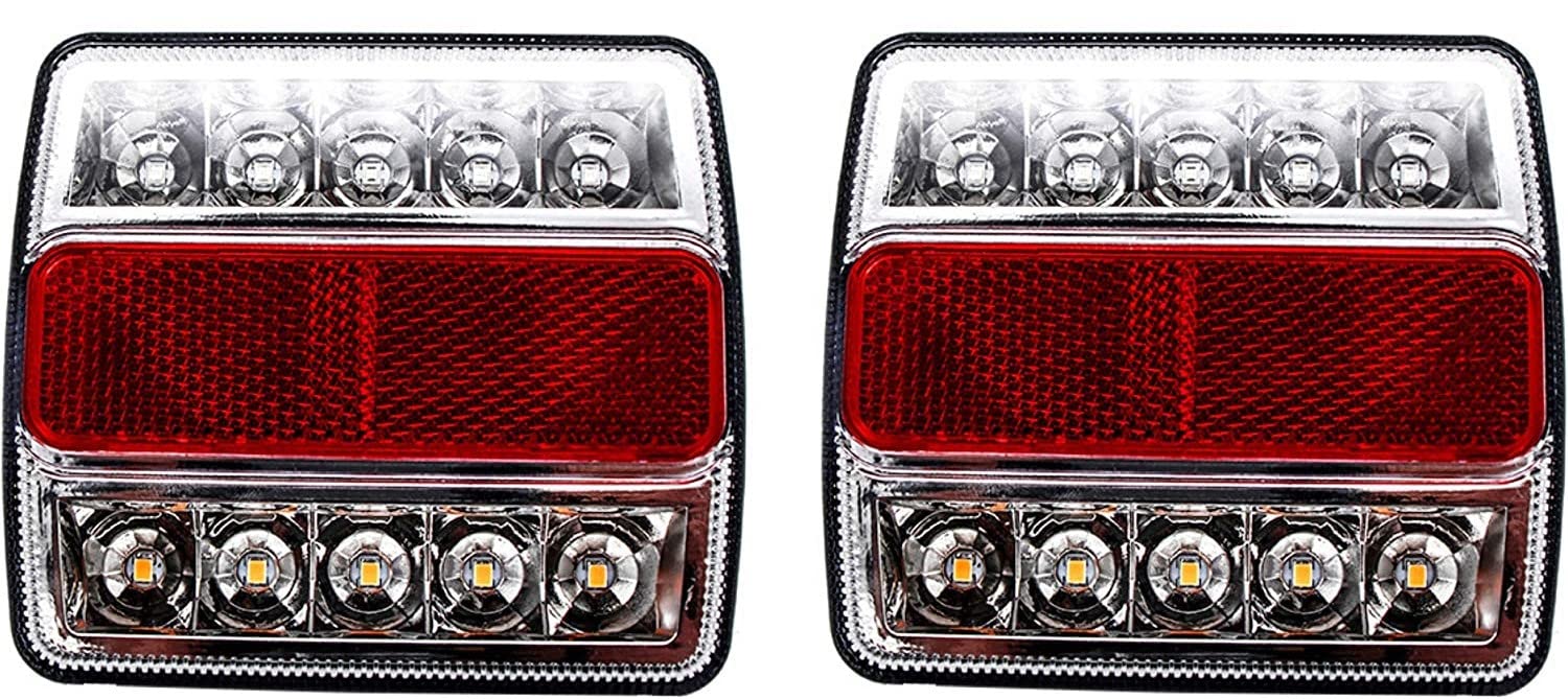 Trailer towing Light Kit comes with left and right lights, suitable for USA standard 12V trailer, Caravan , Low loaders , Jet ski Boats Break downs etc Out light come with 5 functions: Rear Position, Direction Indicator, Brake, Reflector, Number plate light(only on left side light), this lights do not function as backup lights; Red brake lights and flashing orange Direction Indicator lights control by the separate circuit 4.3"x4.0" inch good tail light kit can use on any trailer, three wires on right light for stop/turn/tail functions and 4 wires on left side for stop/turn/tail and license plate illumination functions. IP68 Waterproof and Submersible: All sealed, which means that water will not damage the diodes or circuit board, excellent tightness makes it be definitely waterproof and submersible Comes with 2 strong metal studs and nuts for quick and easy fitting an removal of the light.they handle bumpy roads without falling off. Easy to use, plug in and go. Wiring: White Wire: Ground Wire Black Wire: Running Light Red Wire: Brake Light Yellow Wire: Left Turn/Right Turn Light