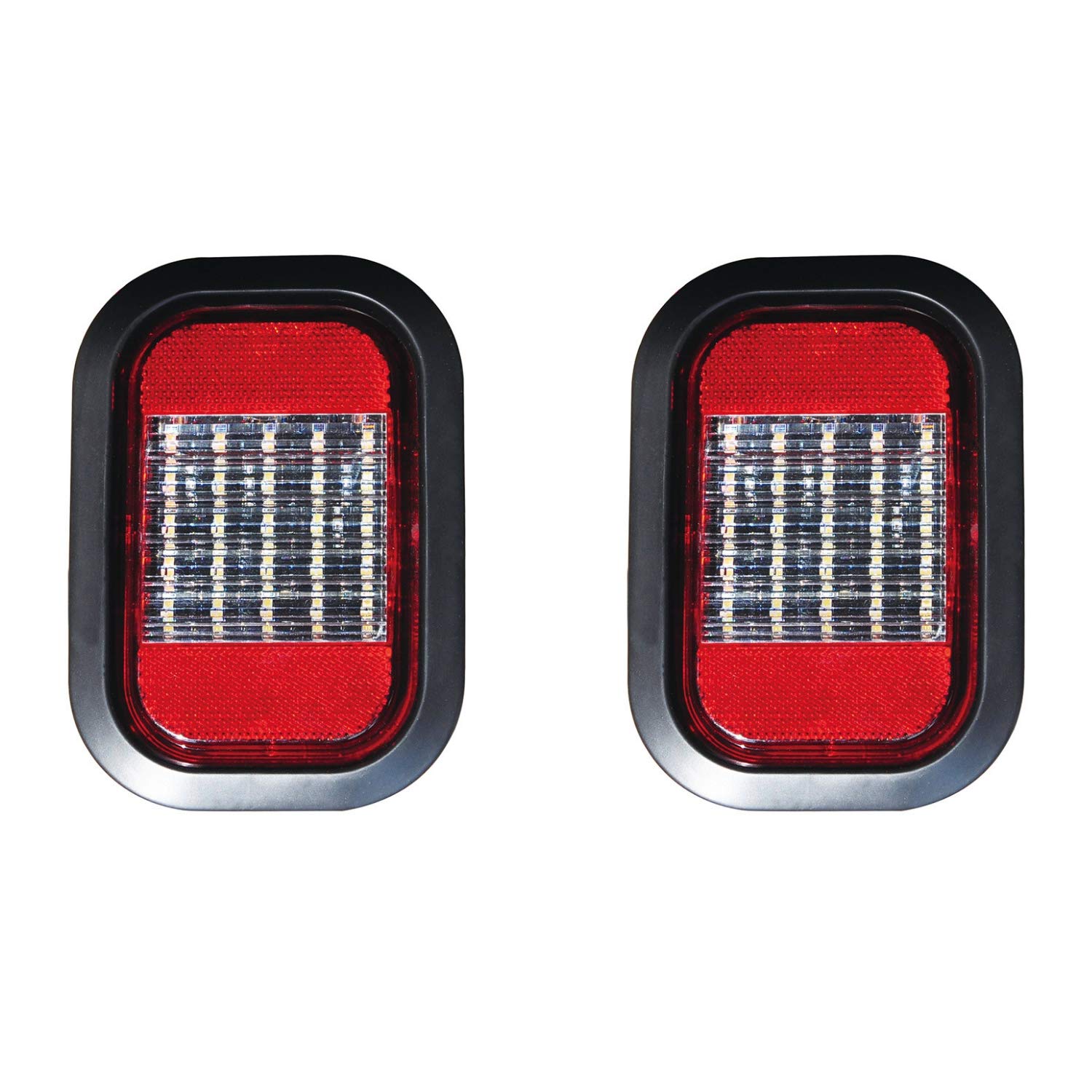 5x3" White Rectangle 25 LED Reverse/Backup Truck Light Grommet & Pigtail, Sealed; recessed rubber grommet mount; 25 White LEDs; 2-wire Right Angle Pigtail. Combined with Red reflectors for maximum visibility.