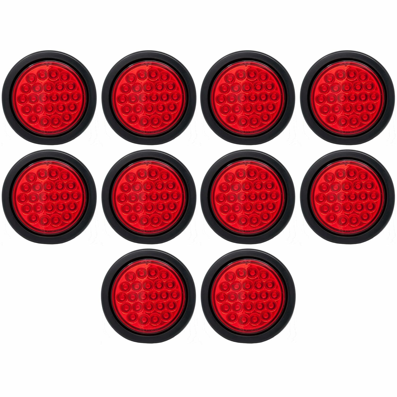 TWO WHITE (2) AND TWO RED (2) SEALED 4" ROUND 24 LEDSTOP TAIL TURN (RED) & BACKUP/REVERSE (WHITE ) LIGHTS 4 5/16 " Wide x 1 7/8" Deep Included in this Sale: 3 Wire Right Angle Plugs for Ground, Stop/Turn, and Tail Functions AND Rubber Grommet! This is a higher quality product that the normal lights out in the market and on eBay right now. It is heavy duty and completely waterproof. Satisfaction is GUARANTEED! The light, wiring and grommet are all seperate pieces, unlike the cheaper quality versions which are all one piece. Meets DOT / SAE Requirements For use on Semi Trucks & Trailers, Service Trucks, Buses, Service Vans, Utility Trucks, Parade Floats, Horse Trailers, Utility Trailers, Pick Up Trucks, and Much More.