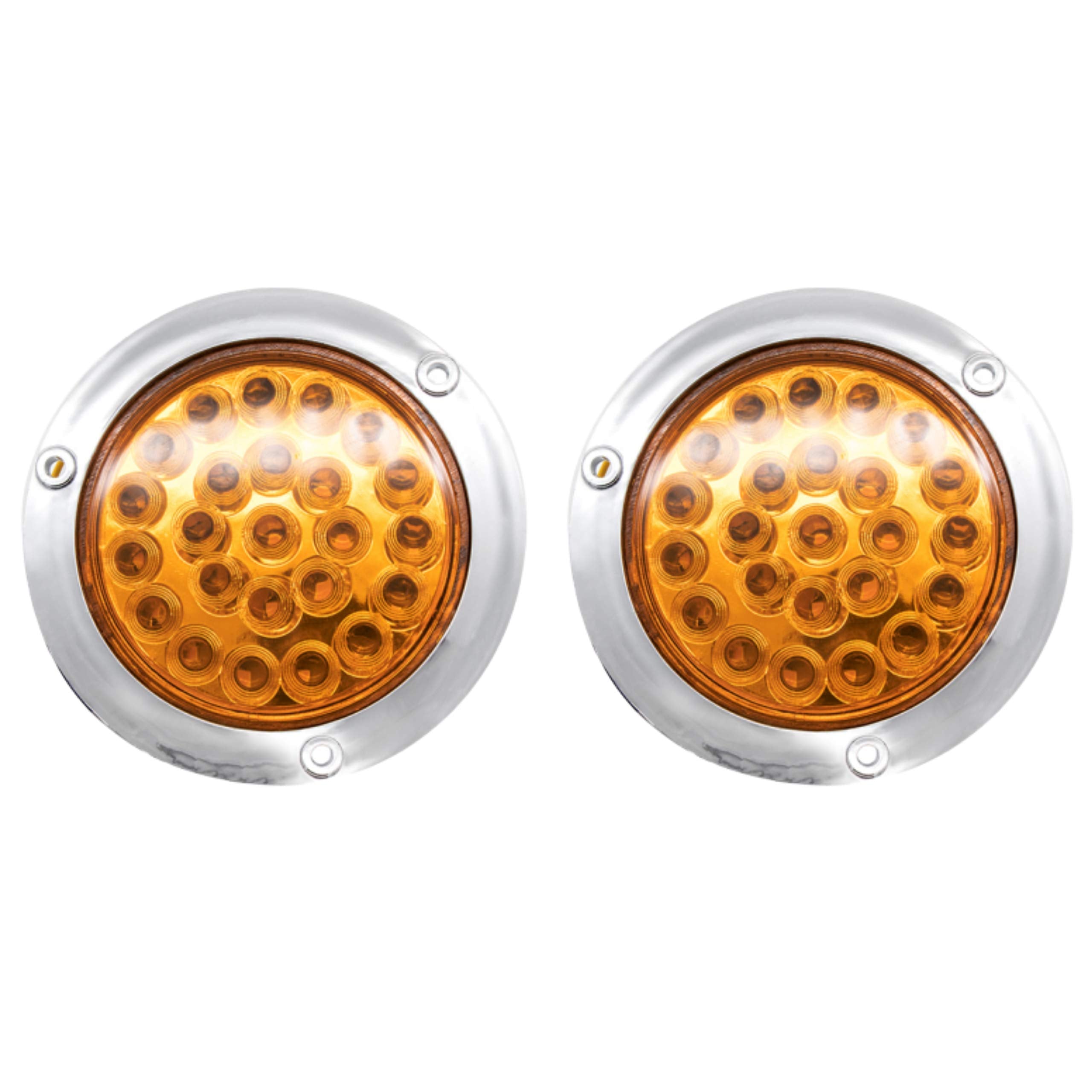 Features: 1. Non corrosive housing, long lasting, dustproof, shockproof, waterproof. Ensures durability for long-term use. 2. These LEDs draw less current, generate less heat and are brighter and light faster than an incandescent bulbs. 3. IP65 waterproof LED trailer lights, effectively withstand the invasion and corrosion of sand, dust, dirt, rain, snow, etc. 4. 4" Round Chrome Rings with 24pcs LEDs, easy to install to different types of 12V vehicles. Applications: Compatible with trucks, trailers, tractors, semi-trailer, dump truck, bus, boat, special vehicle, etc. For Heavy Duty trucks like Kenworth Peterbilt Freightliner Western Star Volvo International Mack Paccar and other Truck lights Product Size: Working Voltage: DC 12V Waterproof Rate: IP65 Shape: Round Number of LED: 24 Light Color: Red/White Outer Diameter: 6" Inner Diameter: 4" Item Dimension: 6*6*1.55 Inch Wire Connection Tips: Gray Wire: Ground Gray Wire + Green Wire: Low Brightness / Tail & Running Light Gray Wire + Red Wire: High brightness / Brake & Stop & Turn Light.